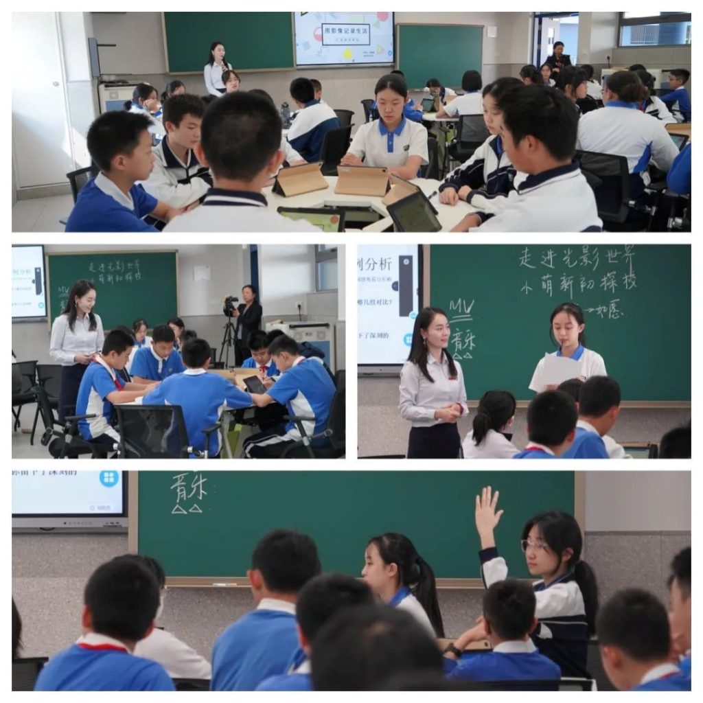 ? ? ? ? 信息技術(shù)學(xué)科組袁晨成老師為大家?guī)砹艘惶弥腔壅n堂融合影視藝術(shù)的綜合實踐大單元主題課程——《用影像記錄生活:小萌新初探?!?。學(xué)生在課堂上通過小組討論分析影視MV作品的表達技法和思想內(nèi)核,教師通過教學(xué)投票、作品展示引導(dǎo)學(xué)生全員參與、分享展示,主動提煉出影視作品常用表現(xiàn)手法。最后學(xué)生通過老師發(fā)布的智慧學(xué)習(xí)包,在學(xué)習(xí)引導(dǎo)和學(xué)習(xí)資源的幫助下,當場創(chuàng)作了一段MV作品。教師借助實時學(xué)情及時調(diào)整教學(xué)策略,通過發(fā)起教學(xué)投票,引導(dǎo)學(xué)生全員參與進行生生互評。