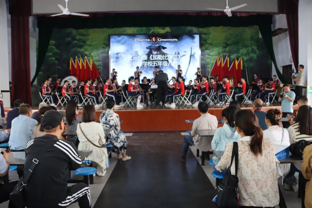 ? ? ? 一曲管樂合奏《加勒比海盜》,拉開了仙源學(xué)校文化展示的序幕。參會代表們依次觀摩欣賞了仙源學(xué)校管弦樂隊(duì)的表演、趣味籃球韻律操表演、啦啦操、旗語操《長歌行》、響板操《孔夫子三字經(jīng)》、課間跑操、功夫扇操《明日歌》等。傳統(tǒng)文化與運(yùn)動融合而成的豐富多彩的文體活動,是運(yùn)動與美麗的張揚(yáng),是運(yùn)動與藝術(shù)的融合,更是班風(fēng)與校風(fēng)的展示,增強(qiáng)了學(xué)生的參與意識、競爭意識和團(tuán)隊(duì)意識,展示了仙源學(xué)子的蓬勃朝氣與颯爽英姿,體現(xiàn)了積極鍛煉、健康向上的時(shí)代風(fēng)貌。